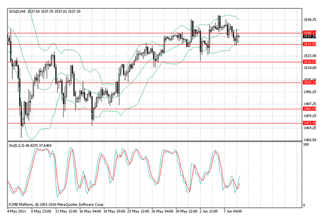 На торгах в Нью-Йорке в среду золото смотрелось очень слабо, тройская унция теряла в цене около 10 долл. Технические факторы указывают на то, что снижение может продолжиться, а уровень поддержки будет найден в области 1531 долл. Сейчас покупатели ищут новый повод, чтобы продолжить работу на повышение цены металла. Таким образом, нужно искать подходящий момент для совершения краткосрочных покупок. С технической точки зрения металл находится в боковом коридоре, а явный тренд отсутствует.