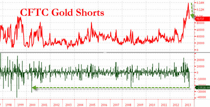 2. Согласно отчетам CFTC на прошлой неделе было закрыто огромное количество коротких фьючерсных контрактов, 23.518 покрытых шортов соответствуют 2.351.800 унций (73.5 тонн).