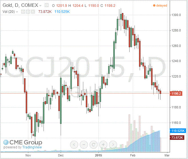 Между тем в другом отчете сообщалось, что индекс потребительского доверия США упал в феврале до уровня 96,4 пункта против 103,8 пункта в январе (пересмотрено с 102,9 пункта). Экономисты ожидали, что индекс снизится до 99,6 пункта. Индекс ожиданий снизился до 87,2 в феврале с 97,0 в январе, так как доля потребителей, ожидавших улучшения условий для ведения бизнеса в течение ближайших шести месяцев, упала до 16,1 процента с 18,9 процента. Стоимость апрельского фьючерса на золото на COMEX сегодня, 24 февраля, снизилась до 1198.20 долларов за унцию.