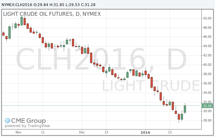 Стоимость мартовских фьючерсов на американскую легкую нефть сорта WTI (Light Sweet Crude Oil) возросла до 31,85 доллара за баррель на Нью-Йоркской товарной бирже. Стоимость мартовских фьючерсов на североморскую нефтяную смесь сорта Brent возросла на 1,98 доллара, до 31,23 доллара за баррель на лондонской бирже ICE Futures Europe.