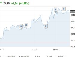 Дневной диапазон торгов по состоянию на текущий момент: нижняя граница 62,58 долл, верхняя – 63,98 долл.