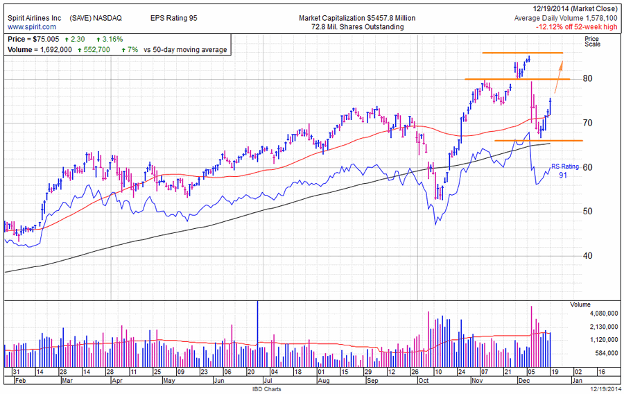 Международная Ассоциация Воздушного транспорта (The International Air Transport Association) сообщила 10 декабря, что ожидает снижение стоимости авиаперелетов в 2015 году на фоне снижения стоимости топлива, и ожидает увеличения числа пассажиров, использующих авиалинии, на фоне улучшения в экономике США. Таким образом, можно ожидать дальнейшего роста котировок акций компании Spirit Airlines при продолжении роста фондовых индексов США.