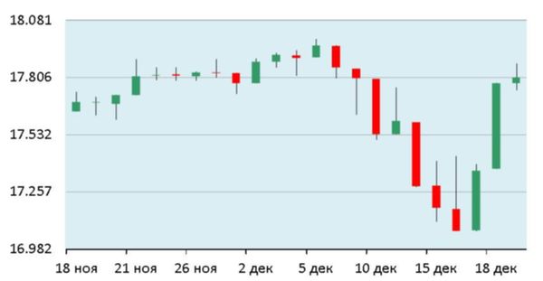 По состоянию на 19 декабря 2014 на бирже ICE Futures цена на фьючерсы нефти марки Brent составила 60,72 доллара/баррель. Эксперты отметили, что в течение пятничных торгов минимальная цена на нефть данной марки составляла 59,11 доллара/баррель, максимальная – 60,87 доллара/баррель. На бирже NYMEX цена на фьючерсы легкой нефти марки WTI составила 56,45 доллара/баррель. В течение торгов минимальная цена на нефть данной марки составляла 54,43 доллара/баррель, максимальная – 56,56 доллара/баррель. "Рынок акций в пятницу находился в негативном тренде по индексу ММВБ и в позитивном – по индексу РТС", - отметили аналитики ActivTrades.