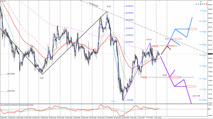 Для продолжения движения вверх нужно пробитие пивота 80,209 с последующим фрактально-зигзаговым разворотом.