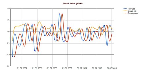 Сегодня, 1.07.2010 в 10.00 мск., опубликованы данные по индексу розничных продаж в Германии в мае.Значение показателя равно 0.4 %.