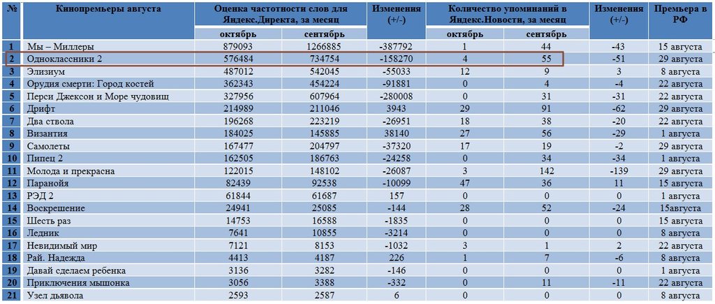 Поисковый запрос "Одноклассники-2" в октябре россияне вводили 576 484 раз, согласно данным сервиса wordstat.yandex.ru. Для сравнения:
