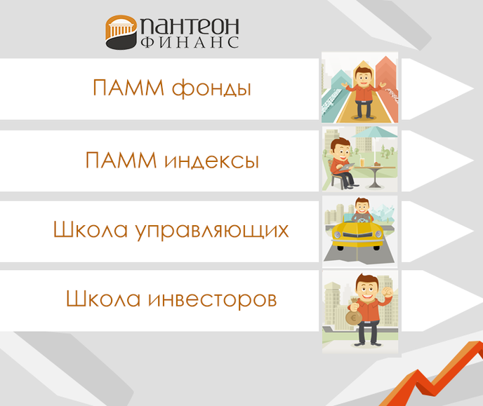 Суть нового инвестиционного продукта «Пантеон Финанс», как и все гениальное, весьма проста. ПАММ фонды созданы на основе групп ПАММ счетов самых успешных управляющих компаний, благодаря профессиональной торговле которых инвестирование имеет максимальную эффективность, низкие риски и высокие доходы. ПАММ фонды можно рассматривать как уже готовый инвестиционный портфель, воспользовавшись которым вкладчик не только получает великолепные возможности для получения солидных прибылей, но также избавляется от необходимости самостоятельного изучения стратегических финансовых вопросов, включая исследование торговли управляющих и осуществление выбора «своего трейдера».