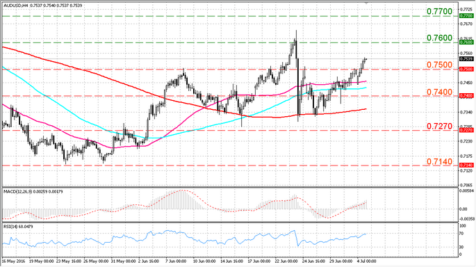 Как отмечают эксперты FortFS, при попытке снижения к поддержке 0,7400 проявился новый интерес на покупку, с учетом которого аусси показывает положительный настрой, поднявшись к отметке 0,7539. Возвращение выше уровня 0,7600 увеличивает шансы на продолжение подъема и тестирование отметки сопротивления в области 0,7700. При этом потеря уровня 0,7500 поставит под сомнение дальнейшую способность котировок AUD/USD продолжить подъем.