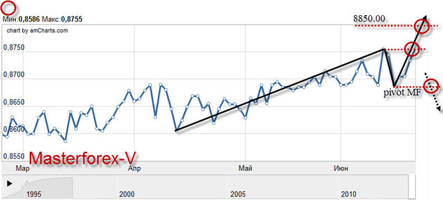 3. Курс белорусского рубля после коррекции вновь пробует на прочность сопротивление 8755,00, отмечают аналитики факультетаонлайн-обучения торговой системе Masterforex-V - после его пробития восходящее движение продолжится и ближайшим важным сопротивлением будет выступать максимум ноября 2011 года 8850,00. Поддержкой выступает пивот МФ 8690,00.
