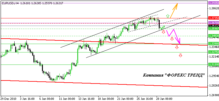 Восходящий же тренд может начать свое развитие по факту роста пары выше уровня сопротивления 1.3670, за чем последует рост до уровня сопротивления 1.3735, при дальнейшем росте выше которого можно ожидать достижения уровня сопротивления 1.3820.