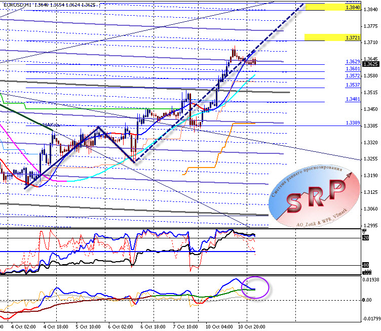 Пересечение ОЛ и СП на таймфрейме Н1 говорит, по мнению специалистов кафедры развития торговой Системы Раннего Прогнозирования при факультете изучения торговой системы Masterforex-V, о начале формирования ТР вниз и в перспективе - о возможном развороте внутридневной тенденции.