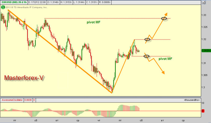 Курс евро закончил формирование бычьей волны А/В уровня Н4. Эксперты факультета изучения торговой системы Мasterforex-V говорят, что подтверждением формирования серьезного медвежьего движения станет пробитие пивота МФ 1.3128. Пробитие локального максимума 1.3197 начнет удлинение текущей бычьей волны. Ближайшее важное сопротивление – пивот МФ 1.3283.