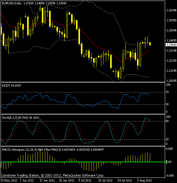 Пара евро/ доллар завершила торги без существенных изменений. Пара закрылась на отметке 1.2393, опустившись по итогу сессии на 2 пункта. По всей видимости, стагнация продолжится ещё некоторое время, а неделя завершится не выше текущих уровней. Индикаторный анализ указывает на преимущество медведей: гистограмма MACD развернулась вниз, двухнедельное скользящее среднее направлено вверх, стохастические линии пересеклись в зоне перекупленности, индекс относительной силы у своих нейтральных значений. Резюмируя, медвежий сценарий развития рыночной ситуации следует принять за основной.