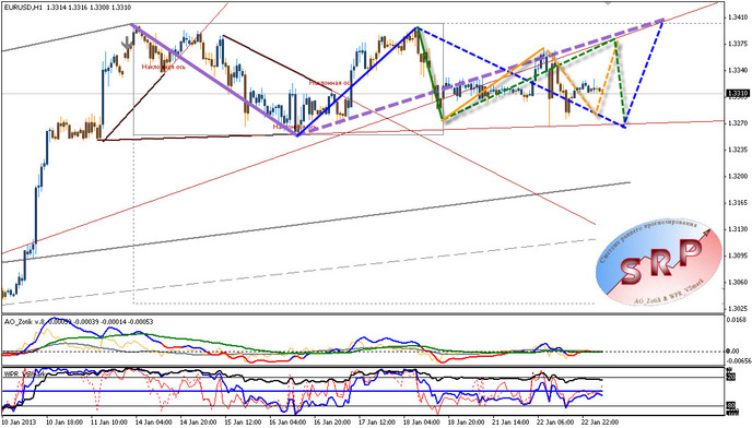 По мнению специалистов кафедры развития торговой Системы Раннего Прогнозирования Академии трейдинга Masterforex-V, курс евро на Forex продолжает сложную коррекцию уровня h1-h4. В течение дня можно ожидать начала фазы "раскрутки" с формированием нескольких волн "С" в соответствующих алгоритмах "АВС".