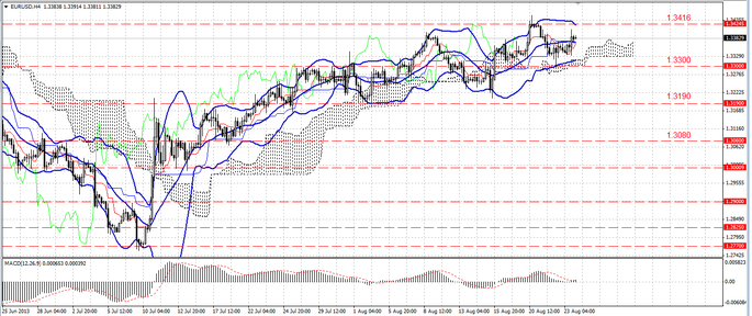 Валютная пара торгуется вблизи средней линии индикатора «Полосы Боллинджера. Данный уровень выступает поддержкой к дальнейшему росту. Сопротивление встречено будет на отметке 1.3360, пересечение которой будет сигналом к росту к отметкам 1.3416, 1.3450.