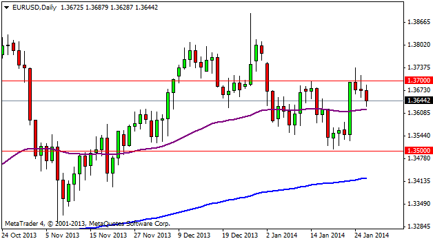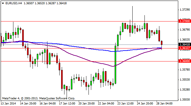 На 4-часовом графике мы видим посещение области слияния 200 ЕМА и 55 ЕМА, вблизи уровня 1.3632. Поэтому не удивительно, что цена пытается отскочить отсюда или, по крайней мере, остановиться в этой области, потому что это очень хорошая зона поддержки для курса валютной пары. "Несколько дней назад мы начали контролировать возможное посещение 200 ЕМА на 4-часовом графике, ожидая отскок отсюда", - сообщил аналитический департамент компании Optionova (входит в рейтинг брокеров форекс и бинарных опционов Академии Masterforex-V) для журнала «Биржевой лидер». Сегодня, 28 января 2014 года, это посещение произошло и нам предоставляется очень хорошая возможность, чтобы попытаться встать отсюда в длинную позицию, но для тех трейдеров или инвесторов, торгующих на рынке Форекс, которые несколько более консервативны, посещение 1.3600 может дать еще одну очень хорошую возможность попробовать встать в длинную позицию.