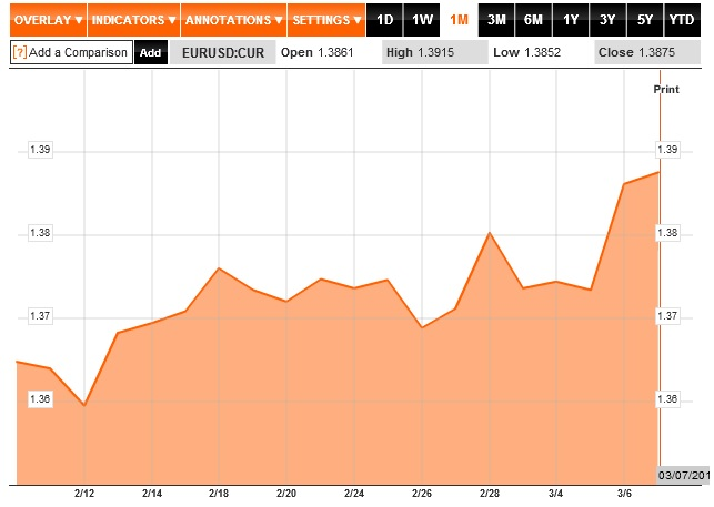 Первая мартовская неделя оказалась для евро/доллара крайне результативной. Шутка ли – основная валютная пара обновила годовые максимумы и продолжает стремиться выше, к 1,39. «Дело в Марио Драги, главе Европейского центрального банка, который по итогам очередного заседания регулятора подчеркнул, что экономика еврозоны выглядит неплохо, потенциал восстановления имеет, и в целом все в ней хорошо. Рынок валют как будто только этого и ждал», - пояснили аналитики Forex компании Alpari журналистам раздела «Новости Форекс» портала «Биржевой лидер».