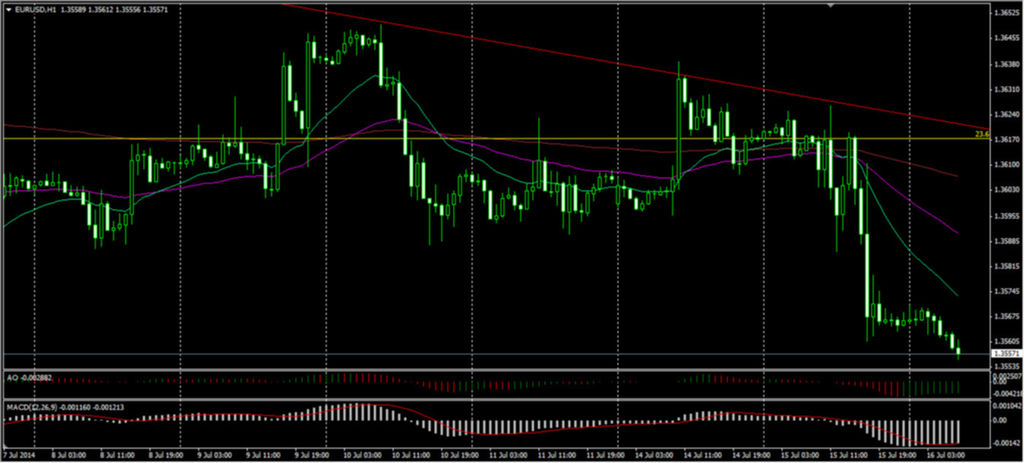 Вчера, 15 июля 2014 года, по Еврозоне вышла довольно слабая статистика. Немецкий индекс экономических настроений ZEW вышел гораздо хуже ожидаемого аналитиками значения, 27.1 вместо 28.9, за прошлый месяц показатель составил 29.8 пункта. Американский доллар резко вырос против единой валюты, продемонстрировав укрепление во вторник, 15 июля 2014 года, которому способствовало также выступление председателя Федеральной резервной системы Джанет Йеллен перед Банковским комитетом Сената США. Прогноз Йеллен относительно экономики Соединенных Штатов Америки был более позитивным, чем ожидалось, и дал основания для поддержки мнения, что повышение процентной ставки может произойти раньше, чем рынки ожидают. Тем не менее, Йеллен отметила, что повышение процентных ставок по-прежнему зависит от ситуации на рынке труда. Она сказала, что "слабым местом" в Соединенных Штатах Америки по-прежнему остается рынок труда и что высокая степень приспособления денежно-кредитной политики остается достаточно целесообразной. Сегодня, 16 июля 2014 года, несколько позже, на американской сессии, ожидается еще одно выступление председателя Федеральной Резервной Системы Джанет Йеллен. Что касается Еврозоны, то на сегодняшний день публикаций важных макроэкономических данных не запланировано.
