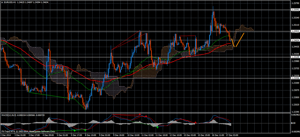 Валютная пара EUR/USD вместо ожидаемой коррекции поднялась вверх и обновила максимум. Торговый диапазон составил порядка 134-х пунктов. Отметка Low при этом спустилась к минимуму – 1.2436, в то время как High уровень мы можем наблюдать у вершины – 1.2569, далеко в зоне быков. В течение сегодняшнего дня ожидаем коррекции, т. к. цена вернулась в зону облака Ишимоку, отметили аналитики Forex Trend.