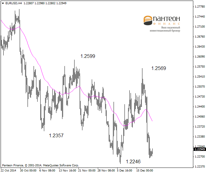 Пара EUR/USD в пятницу, 19 декабря, торгуется в более низком диапазоне. Она находится под давлением в результате позитивного отношения рынка к доллару США и ожиданий того, что ЕЦБ в начале следующего года начнет масштабные покупки государственных облигаций. Тем не менее, отношение рынка к евро улучшилось после роста индекса настроений в деловых кругах Ifo Германии, а также увеличения производства в строительстве в еврозоне в октябре месяце. По мнению аналитиков Форекс компании «Пантеон-Финанс», снижение пары ограничено усилением склонности инвесторов к риску и коррекцией позиций перед выходными.