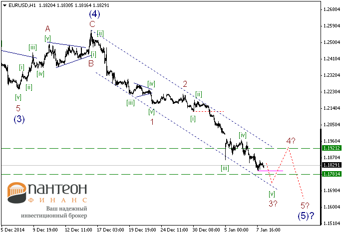 Сегодня, 8 января, евро продолжает движение вниз и вполне вероятно, что в ближайшие дни цена будет находиться в рамках формирования локальной коррекции к последнему импульсу вниз. Пока сложно предположить насколько высоко сможет подняться пара, но данную коррекцию стоит использовать для увеличения коротких позиций. Поэтому рекомендуется удерживать ранее открытые короткие позиции и при росте цены продолжать наращивать их с целями в районе 1,1700, а защитные стопы на возможные убытки размещать за уровнем, который будет сформирован ожидаемой коррекцией.