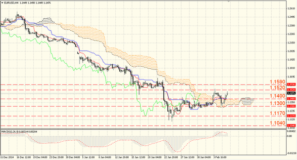 Вероятно, трейдеры будут разочарованы декабрьским релизом относительно американского торгового баланса. Во-первых, в связи с ревальвацией доллара американские товары теряют конкурентоспособность, для экспорта это выступает отрицательным фактором. Во-вторых, в течение декабря традиционно увеличивается отрицательное сальдо торгового баланса. Это дает повод предположить, что данные будут хуже прогнозов. Покупатели смогли пробить 1.1400, после того по евро ожидалась коррекция вверх, однако обратное пробой поддержки 1.1400 завершило коррекцию. После тестирования 1.1300 пара развернулась вверх и закрыла торги выше 1.1400. В районе 1.1400 расположена первая поддержка, ниже – 1.1300. В области 1.1520 находится первое сопротивление, выше – 1.1590.