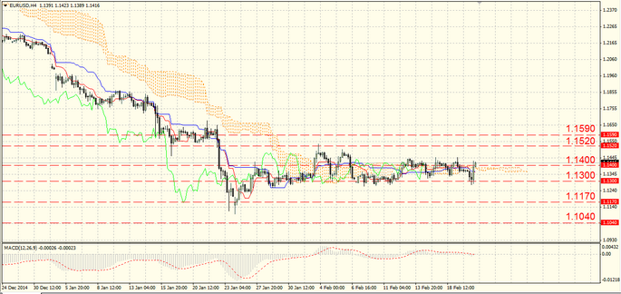 Европейские новости были унылые, и снижение по евровалюте продолжилось, однако в конце торгов подросла. Французский индекс потребительских цен в январе продемонстрировал снижение на 1%. В декабре платежный баланс еврозоны составил 17.8 млрд евро. Греция получила отказ от Германии по вопросу продления на полгода кредитного соглашения. Причиной отказа стало то, что Греция не хочет выполнять условия жёсткой экономии. Тем не менее, Греция и Еврогруппа пришли к компромиссу. Пробой 1.1400 не привело к активному росту евровалюты против доллара США. Совсем наоборот, торги приобрели характер длительной консолидации, проходящей в рамках уровней 1.1400 – 1.1300. В районе 1.1300 расположена первая поддержка, ниже – 1.1170. В области 1.1400 находится первое сопротивление, выше – 1.1520.