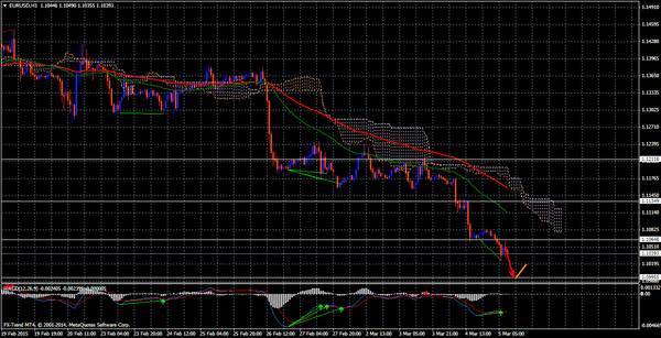 Валютная пара EUR/USD, как и планировали эксперты, спустилась вниз, пройдя поставленные цели в 45 пунктов. Торговый диапазон составил порядка 159-ти пунктов. Отметка High при этом поднялась к максимуму в 1.1185, в то время как Low уровень можно было видеть возле минимума в 1.1026 в зоне "медвежьего рынка". В течение сегодняшнего дня ожидаем продолжение спуска к ближайшему уровню поддержки. Альтернативных вариантов не рассматриваем. EUR/USD стабилизировалась над 1.1000 после того, как комментарии Драги отправили пару к 11-летнему минимуму на 1.1006. "Несмотря на то что пара изначально двинулась вверх, она быстро растеряла очки и ослабла более чем на 100 пунктов после того, как ЕЦБ заявил, что покупки бондов начнутся 9 марта и затронут бумаги с доходностью до -0,2%", - отметили аналитики Forex Trend.
