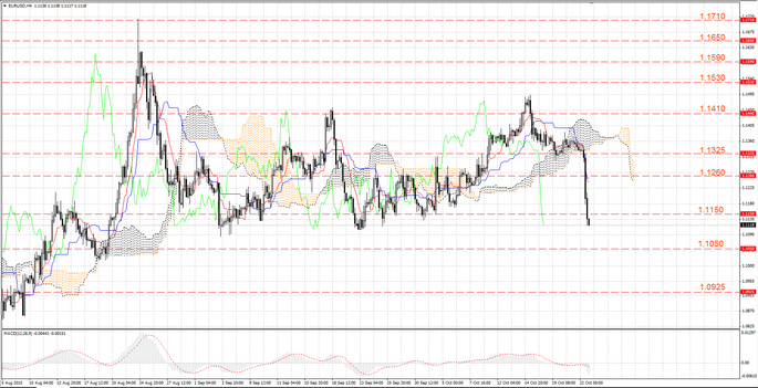 В отметке 1.1050 расположена первая поддержка, вторая ниже 1.0925. В отметке 1.1150 находится первое сопротивление, второе выше 1.1260. Цена пробила облако Ишимоку и устремилась вниз. Индикатор подает сильный сигнал на продажу, а уровень Чинкоу-Спан располагается выше пары. Тenkan-сен и Kijun-сен направлены вниз. Гистограмма MACD располагается в красной зоне. Индикатор указывает на понижение. Ожидается понижение до отметки 1.1050. Рынок находится во власти медведей. Предполагается, что после резкого падения рынок перейдет в режим консолидации и отката. Целью отката является уровень 1.1150, сообщили эксперты Fort Financial Services.
