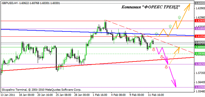 Восходящий же тренд начнет свое развитие по факту роста пары выше уровня сопротивления 1.6105, за чем последует рост до уровня сопротивления 1.6185, далее - 1.6265 и 1.6445.