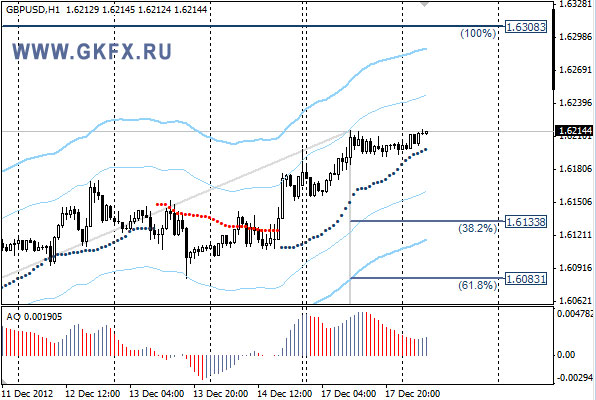 Пара фунт/доллар в понедельник закрылась ростом, подтверждая предположение дальнейшего роста. Значимые уровни на сегодня отмечены на графике. Индикатор АО движется вверх в положительной зоне, указывая на желание расти. Индикатор тренда указывает на рост. Пара растет без значительных откатов, войти нет возможности. Цели у валюты на этой неделе 1.6300. Вне рынка советуют оставаться аналитики компании GKFX.