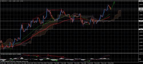 Судя по всему, пара GBP/USD будет стремиться к продолжению покупки. Цена торгуется над скользящими средними EMA и над облаком Ишимоку, а это является свидетельством преимущества восходящего тренда. На вероятный рост цены в перспективе указывают положительные MACD средние, а импульсы OsMA сигнализируют о возможном падении перед продолжением роста.
