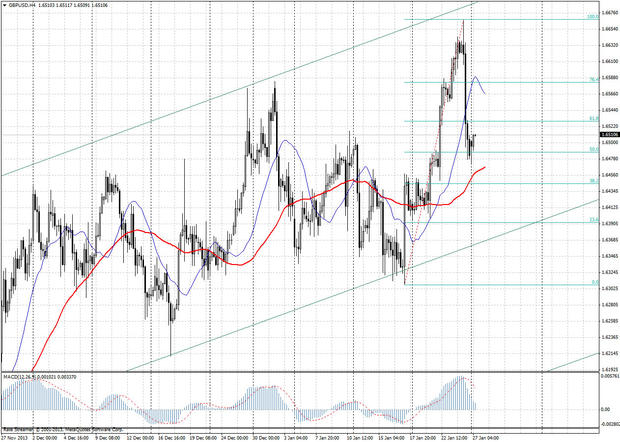 Как видно из четырехчасового графика, пара фунт-доллар восстанавливается на рынке Forex после падения, начавшегося в конце предыдущей недели. Пятничная коррекция достигла уровня 50 по Фибоначчи по последнему импульсу. "Можно предположить, что дальнейшее движение курса валютной пары GBP/USD на рынке Форекс пойдет в направлении действующего восходящего коридора", - сообщили аналитикам раздела "Новости Форекс" портала «Биржевой Лидер» эксперты компании Larson and Holz IT Ltd (компания входит в рейтинг брокеров Forex Академии Masterforex-V). Новости макроэкономической статистики, выходящие сегодня, 27 января 2014 года, касаются главным образом США - будут опубликованы данные по продажам нового жилья.