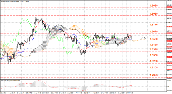 Реакция товарного рынка на результаты заседания Федерального резерва по кредитно-денежной политике выражалась в основном падением котировок. Такое развитие событий негативно повлияло на британский фунт. На фоне пустого экономического календаря в Британии перед этим, инвесторы обратили внимание на экономические показатели США, в частности, на данные по ВВП. Согласно сообщениям, данные оказались хуже прогноза, составив 2.3% вместо 2.6%. Лучше прогноза вышли данные по количеству первичных заявок на получение пособий по безработице в США. Результат 267К вместо 270К. Произошёл ложный пробой сопротивления 1.5670, который сопровождался сильным понижением цены.