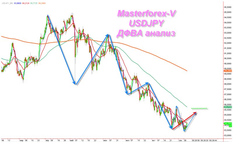 Сейчас пара находится в восходящей волне и мы прогнозируем продолжение роста до уровня 85,60, однако коррекция вниз в начале недели очень вероятна.