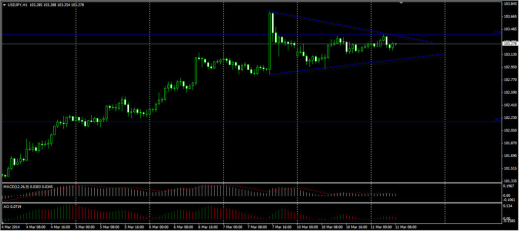 Пара USD/JPY после достижения максимума на рынке Forex в пятницу, 7 марта 2014 года, на фоне положительных данных по рынку труда в США, открыла текущую неделю небольшим (11 пунктов) гэпом вниз. Однако пара потеряла больше, чем 50% роста на фоне публикации американского показателя уже в тот же день. В понедельник пара перекрыла гэп и вернулась к уровню 50% от роста во время публикации американского показателя Non-Farm Employment Change. В данный момент пара продолжает торговаться в узком диапазоне. Сегодня, 11 марта 2014 года, Банком Японии было опубликовано заявление о монетарной политике Банка Японии, в котором было подчеркнуто, что японская экономика продолжает восстанавливаться умеренными темпами. Также банк подчеркнул, что продолжит программу покупки активов, сумма покупки увеличится в годовом выражении около 50 триллионов йен. На сегодня также назначена пресс-конференция Банка Японии, время проведения не уточняется. "По Америке будет опубликован индекс открытых вакансий в несельскохозяйственной сфере", - сообщили аналитикам раздела "Новости Форекс" портала «Биржевой Лидер» эксперты компании TurboForex.