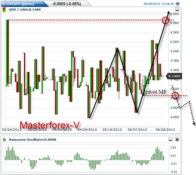 3. Курс гривны пробил важные сопротивления 8.1596, 8,2016 и 8,2083 и откатился во флет - отмечают аналитики факультета онлайн-обучения торговой системе Masterforex-V. Остается важное сопротивление 8,2677. Поддержка располагается на уровне 8,0711.