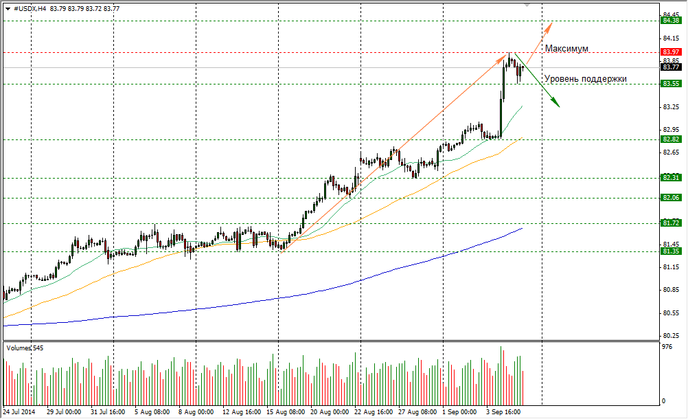 Курс доллара в пятницу прекратил активный рост против корзины из 6 валют. Торги по индексу доллара в пятницу завершились снижением на 0,4% в районе 83,97.