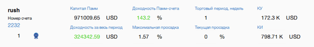 – Rush (счет 2232), консервативная торговля с минимальными рисками.