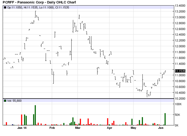 Сегодня акции компании Panasonic, отмечают аналитики брокера TurboForex, прибавили к середине дня 0.94% и продолжают торговаться в зеленой зоне около отметки в 11,15 доллара.