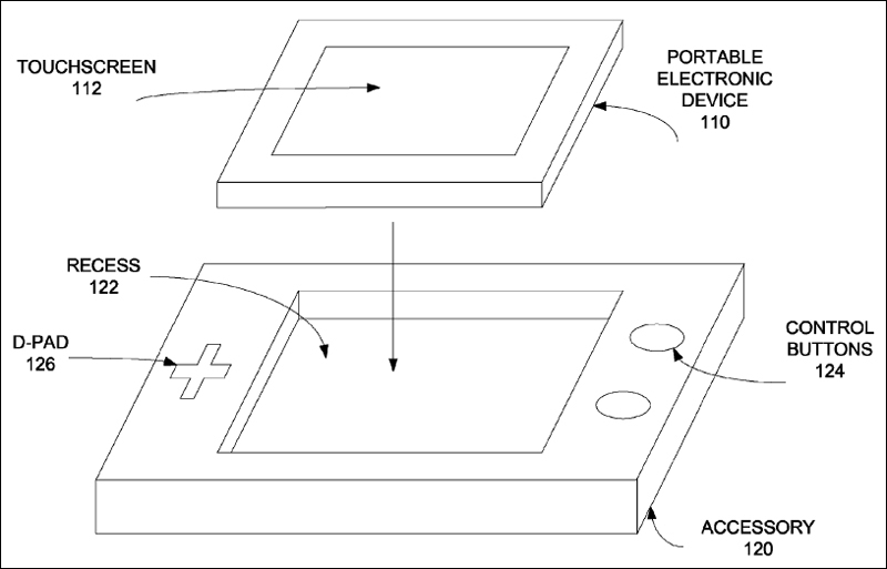 Apple получила получила очередной патент, сообщили представители управления США по патентам и торговым маркам, и на этот раз речь идет об «аксессуаре» для управления в играх на портативном электронном устройстве. Как выяснили корреспонденты издания «Биржевой лидер» раздела Hi-tech, «яблочный» производитель запатентовал держатель для смартфонов, обладающий игровыми органами управления — крестовиной, кнопками, при том, что сам сотовый аппарат предлагается устанавливать в специальное углубление в корпусе аксессуара.