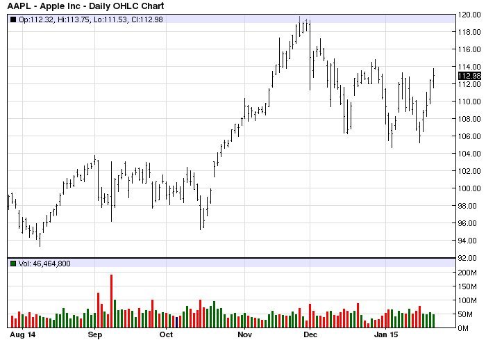 Акции Apple сегодня, отмечают аналитики брокера FBS, подорожали к середине дня на 5,65%, закрепившись около отметки в 115,31 доллара.