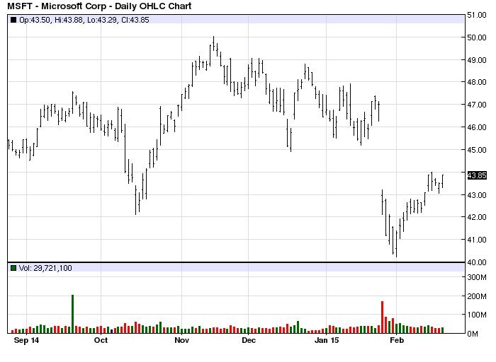 Акции Microsoft сегодня, отмечают аналитики брокера Fort Financial Services, с начала торгов прибавили 0,80%, закрепившись около отметки в 43,85 доллара.