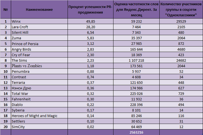 Для определения эффективности пиара игр для девочек в сети Интернет аналитики "Биржевого лидера" просчитали соотношение количества участников в группе соцсети "Одноклассники", которые посвящены конкретным играм, и количества запросов по ним в поисковой системе Яндекс за последний месяц.