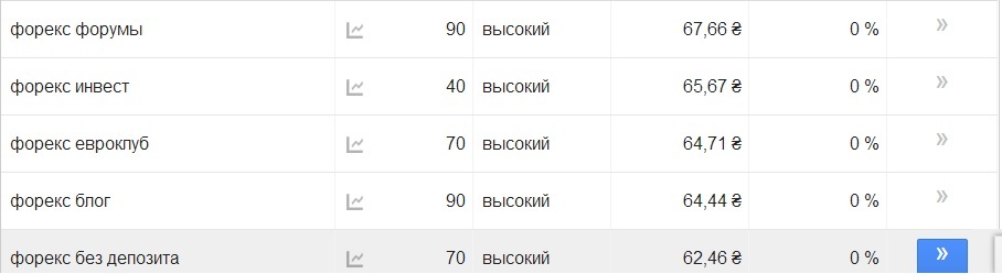 По тематике "брокер" в Google Adwords самыми популярными среди жителей Российской Федерации, а также дорогостоящими являются следующие запросы: