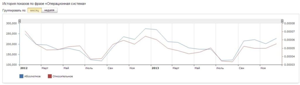 Как видно из представленной таблицы, россияне вводили поисковый запрос "операционная система" в Яндексе 221 873 раза за месяц в Яндексе, согласно данным сервиса wordstat.yandex.ru. Для сравнения:
