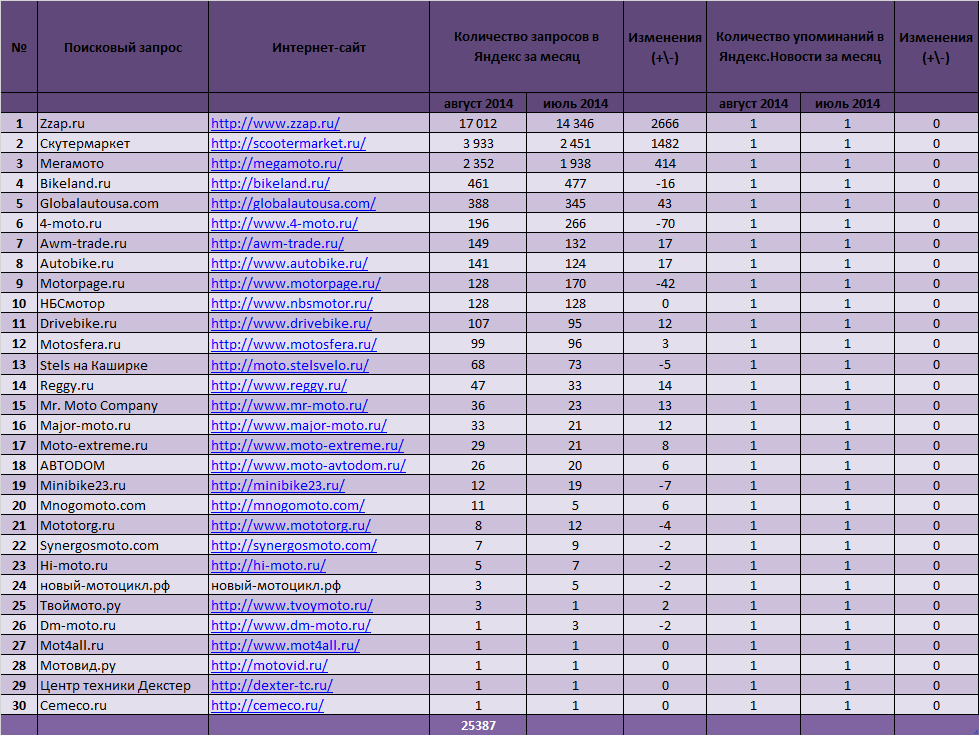 Как видно из фото, жители Российской Федерации интересовались запросом «мотоцикл» в поисковой системе Яндекс 1 430 070 раз в августе текущего года.