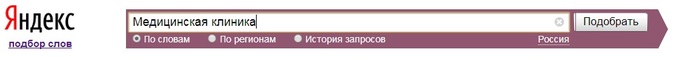 Как видно, запрос «медицинская клиника» в поисковой системе Яндекс за последний месяц вводили 27785 человек, а вместе с ним так же искали: