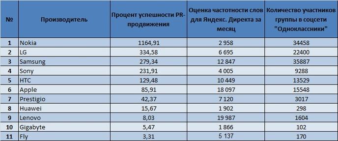 Для определения эффективности пиара брендов смартфонов аналитики «Биржевого лидера» просчитали соотношение количества человек в группах соцсети «Одноклассники», которые посвящены конкретным брендам, и количества запросов по ним в поисковой системе Яндекс за последний месяц.