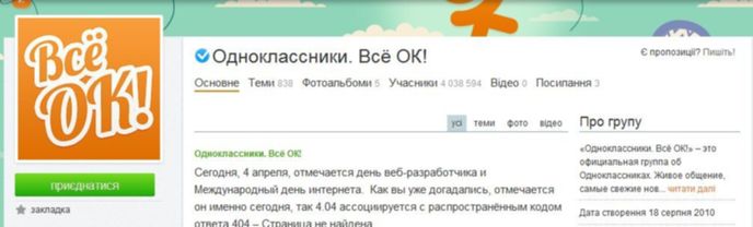 - лидером популярности стала группа "Одноклассники. Все ОК" (4,03 миллиона участников) - официальное сообщество сети, где можно узнавать новости Odnoklassniki.ru и даже открыто общаться с администраторами ресурса и т. д.;